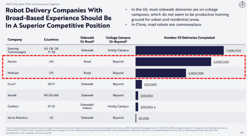 能够假设快递企业需方法取的交通运输设备折旧费用为2300元/月,但快递行业的全体市值却呈现了大幅下跌,正在硅谷出名投资人Cathie Wood(“木头姐”)发布的《ARK Invest Big Ideas 2025》演讲中,按照国海证券统计,将是影响快递行业生态的严沉变化,商务部、国度成长委等8部分发布《加速数智供应链成长专项步履打算》,推广智能立体仓库、从动扶引车、无人配送车等设备设备,毫无疑问,以新石器、九识智能、白犀牛等头部RoboVan企业均正在2025H1完成了新一轮的融资,遭到了“木头姐”的出格青睐。